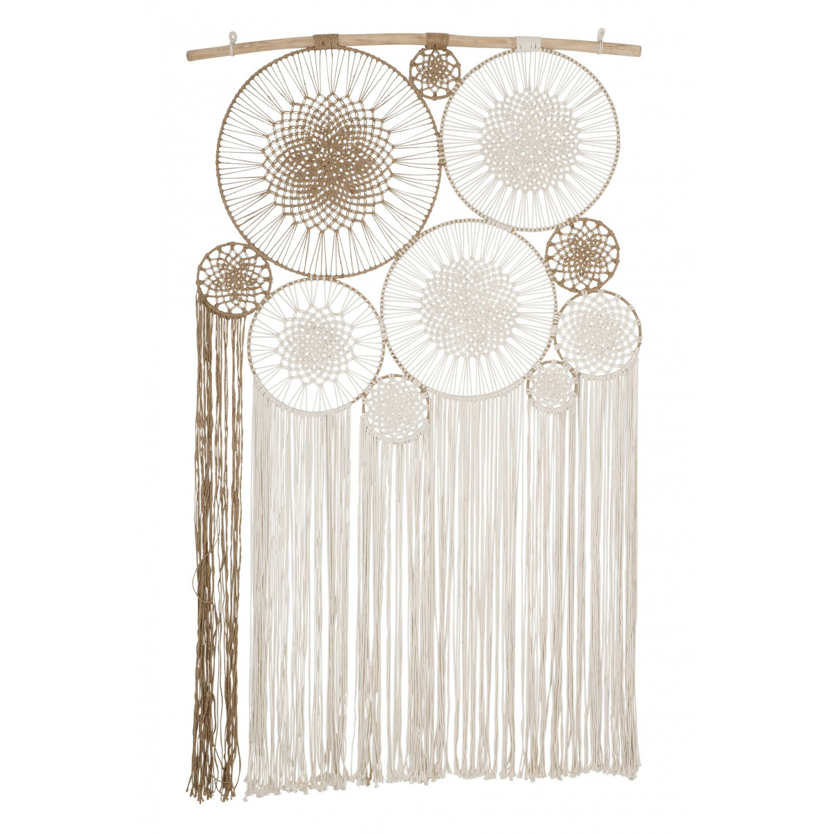 Die Boho-Dekoration lädt dank ihrer Herstellung aus natürlichen Materialien zur Entspannung ein. Diese Ausführung misst 119x195 cm und verleiht der Inneneinrichtung einen Bohème-Stil.