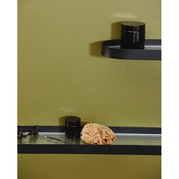 diesem Sotra Wandregal können Sie neuen Stauraum im Badezimmer schaffen. Es besteht aus schwarzem Edelstahl und hochwertigem gerilltem Glas, das feuchtigkeits- und verschleißfest, robust und langlebig ist. Dieser Artikel hat eine Größe von 60x13,5 x 2,5 cm.