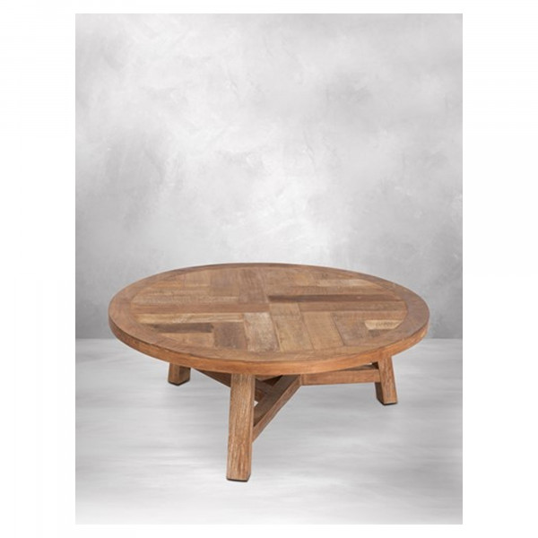 Dieser Kloster-Couchtisch ist ein dekoratives Element im Wohnzimmer. Dank ihres einfachen und einzigartigen Designs finden diese DTP Home-Möbel aus Teakholz problemlos ihren Platz in einem Raum. Dieser runde Tisch in natürlicher Farbe hat eine Abmessung von Ø90x35 cm.