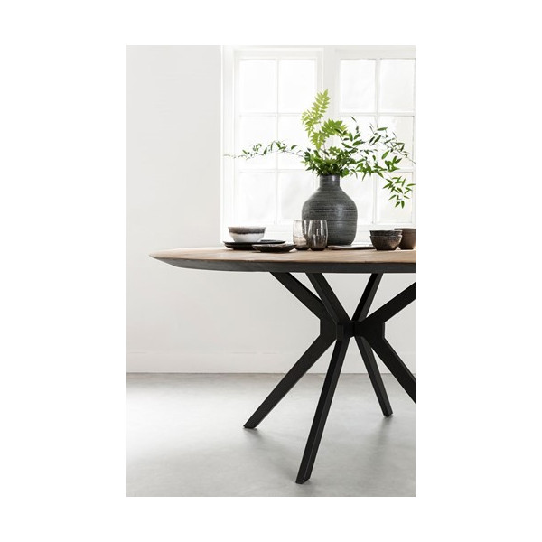 Der Metropole Esstisch besteht aus recyceltem Teakholz. Dieser runde Tisch in natürlicher Farbe eignet sich dank seines ultramodernen und einfachen Stils perfekt im Esszimmer. Es ist in zwei Größen erhältlich.