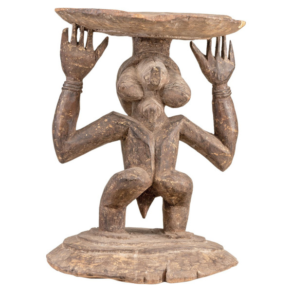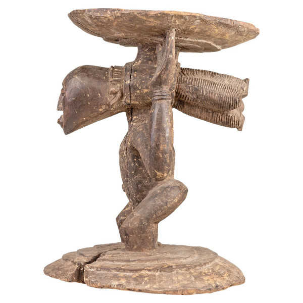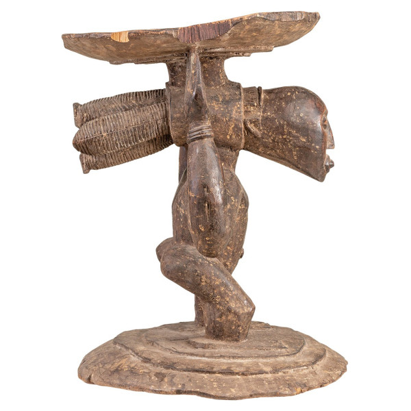 Dieser königliche Louba-Hocker ist ein wunderschönes und leistungsstarkes Produkt. Er ist aus Naturholz gefertigt und misst 41x39x53,5 cm. Der Hocker ist mit komplexen geometrischen Mustern verziert, die die Macht und den Reichtum des Küchenchefs symbolisieren. Die Louba sind ein Stamm aus der Demokratischen Republik Kongo. Sie leben in der südöstlichen Region des Landes. Die königlichen Stühle von Louba sind wichtige Objekte in der Kultur des Stammes. Sie werden bei wichtigen Zeremonien und Ritualen verwendet. Dieser Hocker ist ein Unikat.