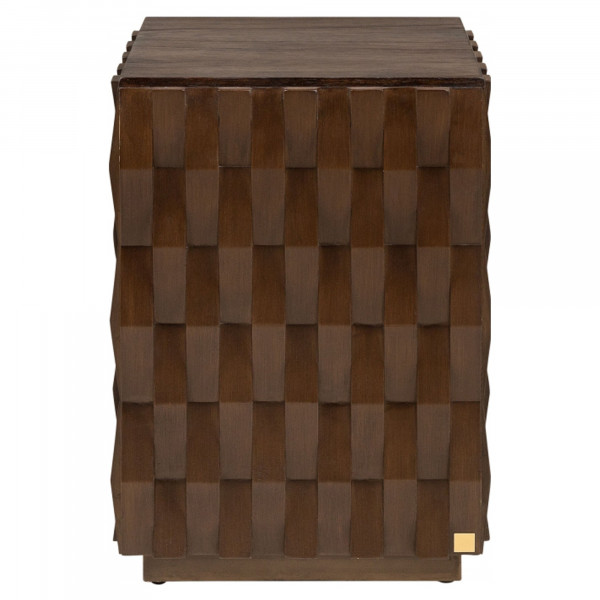 Der Vermissen Naga Tisch ist ein Möbelstück mit einem originellen Design. Mindi-Holz ist so strukturiert, dass auf dem gesamten Tisch dekorative Mosaikdetails vorhanden sind. Es ist ein praktisches Möbelstück, das sich dank seiner Größe 37x37x52 cm leicht bewegen lässt. Es ist in Kaffeefarbe erhältlich.