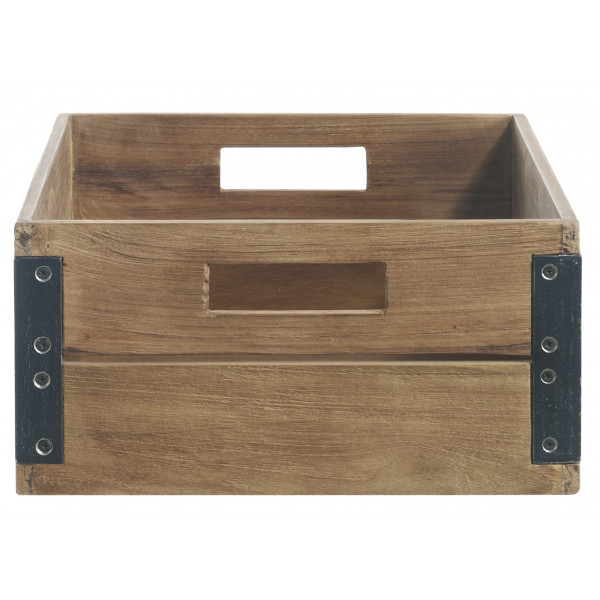 Die Aufbewahrungsbox Fendy besteht aus Teakholz und hat eine Struktur aus schwarzem Metall. Ihre Abmessungen sind 32x35x16 cm. Sie verleiht eine gelungene Vintage-Dekoration.