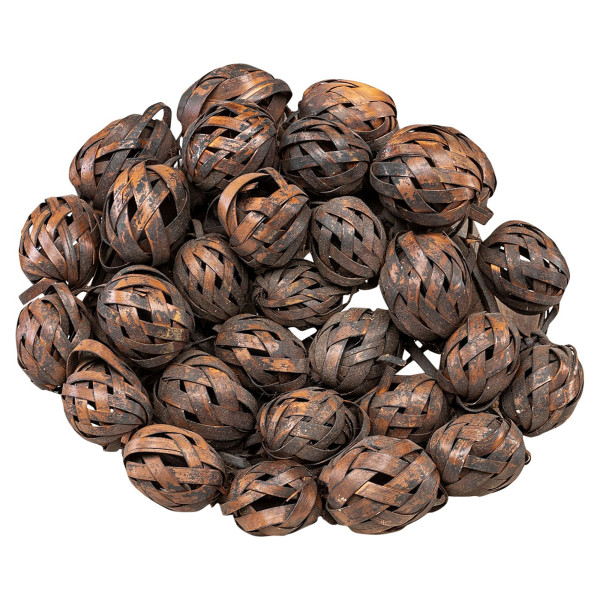 Die Mukinka-Salampasu-Maske mit einer gewölbten Stirn, die mit eingekreisten Stöcken verziert ist und mit Weidenkugeln gekrönt ist, die einen dichten Kopfschmuck bilden. Sein Gesicht hat eine ausgestellte Nase und spitze Zähne, die an Zeremonien und Kriegerriten erinnern. Manche Masken, die bei Beerdigungen und Einweihungen verwendet wurden, erregten so viel Furcht, dass ihr einfacher Name Frauen und Kinder erschreckte. Unikat, aus Holz, Bast und Seil gefertigt, 21x27,5x43 cm, 21x27,5x43 cm, aus dem 20. Jahrhundert, ursprünglich aus Zaire im Stamm der Salampasu.