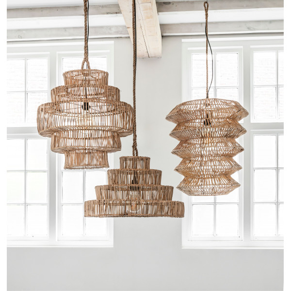 Die Hängeleuchte Talamanca besteht aus Pitrit, einem natürlichen Rattan. Bei diesem Material wird das Herz des Pilzes in Stangen geschnitten. Diese Stangen werden dann verwendet, um die Lampe zu formen. Die Hängeleuchte hat die Maße Ø52x60 cm und eine Höhe von bis zu 110 cm. Sie verfügt über eine E27-Fassung (Glühbirne nicht im Lieferumfang enthalten).