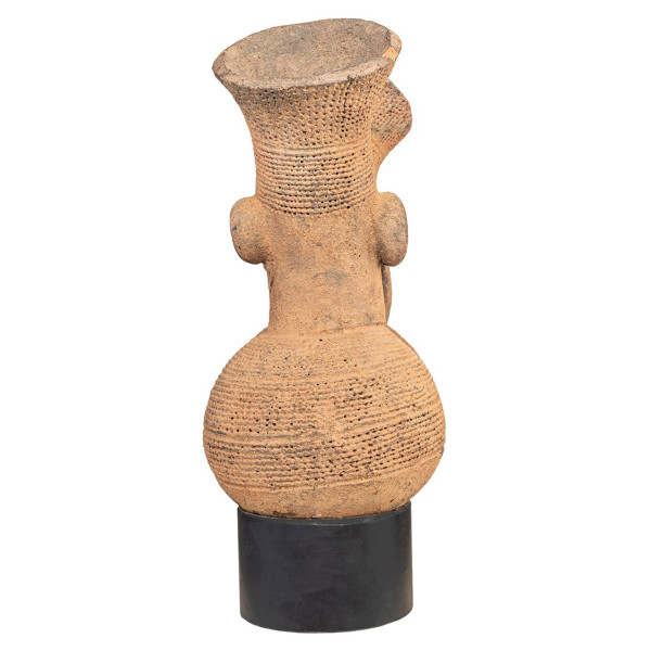 Dieser Mangbetu-Topf stammt aus der Demokratischen Republik Kongo und ist ein gutes Beispiel für afrikanische Kunst und Kultur. Er stammt aus dem 20. Jahrhundert und misst 21x50,5x51 cm. Diese Skulptur besteht aus Terrakotta. Dieser Mangbetu-Topf ist ein wunderschönes Stück Kunst und Kultur. Es zeugt vom Know-how der Mangbetu-Handwerker und vom Reichtum der afrikanischen Kultur. Die schwarzen Basen sind nicht Teil des Artikels.
