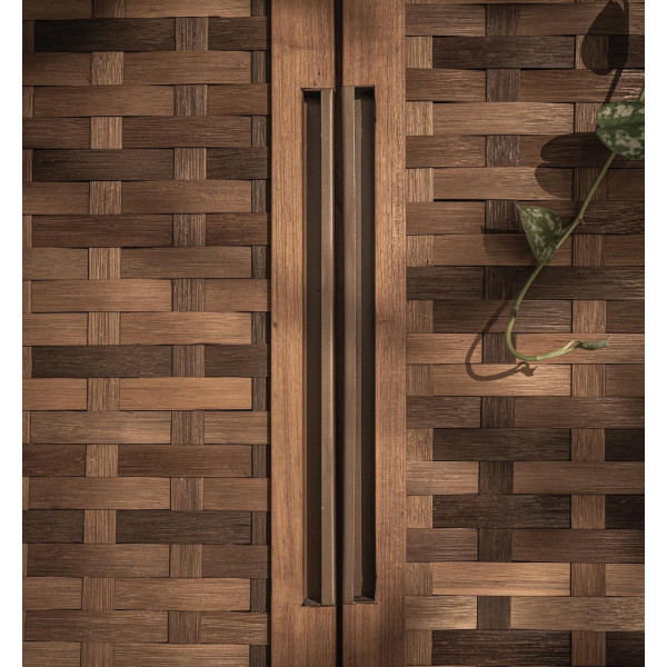 Der Kleiderschrank Karma ist ein handgefertigtes Möbelstück aus wiederverwertetem Teakholz mit zwei handgewebten Teaktüren und einem offenen Fach. Sein Eisenrahmen ist mit einem herrlichen matten Messingeffekt versehen und bietet ein klassisches und raffiniertes Aussehen. Die elegant strukturierten Türen verbergen im Inneren sechs herausnehmbare Regale, sodass Sie Ihre Sachen perfekt organisieren können. Das Gerät misst 95x45x165 cm.