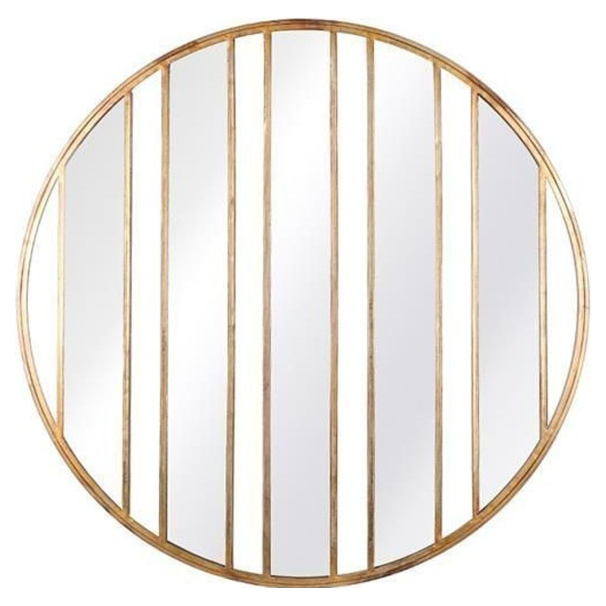 Der Athezza Barreaux-Spiegel ist perfekt, um Wänden Glanz zu verleihen. Dieser vollständig aus goldfarbenem Metall gefertigte Spiegel zeichnet sich durch seine runde Form und sein Design mit Balken aus. Seine Besonderheit liegt in den fünf senkrechten Linien, die das Glas durchtrennen, was ihm eine einzigartige Originalität verleiht. Ob im Wohnzimmer, Schlafzimmer oder Eingangsbereich, dieser Spiegel mit einem Durchmesser von 91,5 cm ist sowohl funktional als auch dekorativ.