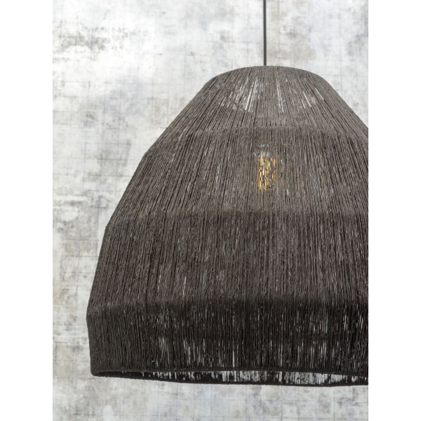 Коничнатависулка Iguazu, изработена от юта влакна и желязо, веднага съблазнява със своя характер, съчетаващ естественост и модерност. Добавя нотка на привързаност към една стая. Това осветително тяло се характеризира с дължина 60 см, регулируема височина от 50 до 200 см и размер на основата 11 см в диаметър х 4 см дебелина. Този модел има абажур с диаметър 60 см и височина 25 см. Този висулка има основа E27 (крушката не е включена).