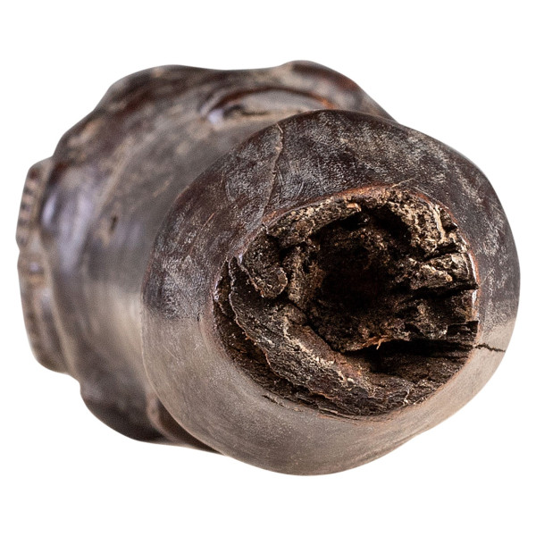 Фигуралните пръчки Mvwala, основни емблеми на властта в Конго, служат като „комуникационен канал и символ на легитимност“, свързващ предците с живите. Тази скулптура от естествено дърво от племето Йомбе в Демократична република Конго, датираща от средата на 20 век, е с размери 5,5х5х28,5 см. Илюстрирайки иконографията на конгоанското вождовство, тя представлява жена на колене, подчертавайки преобладаващата роля на жените в това общество. Уникален, завладяващ артефакт, свидетелстващ за културното и символичното богатство на традициите на Йом