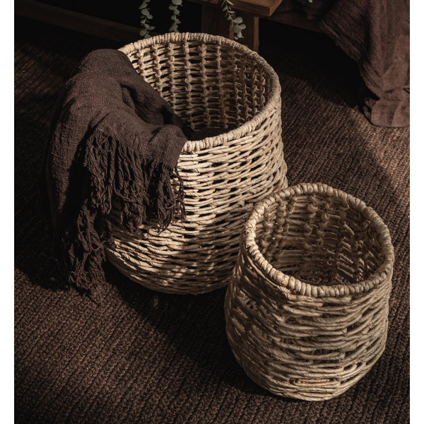 Комплектът кръгли кошници Raung е идеалното допълнение към вашия дом. Ръчно изработени от местни занаятчии, използващи древна яванска техника, тъкането е направено от влакна от абака, което е здраво и издръжливо. Със своята естествена красота, комплектът кръгли кошници Raung е красив аксесоар за всеки дом. Размерите са ø32х36 см и ø45х45 см.