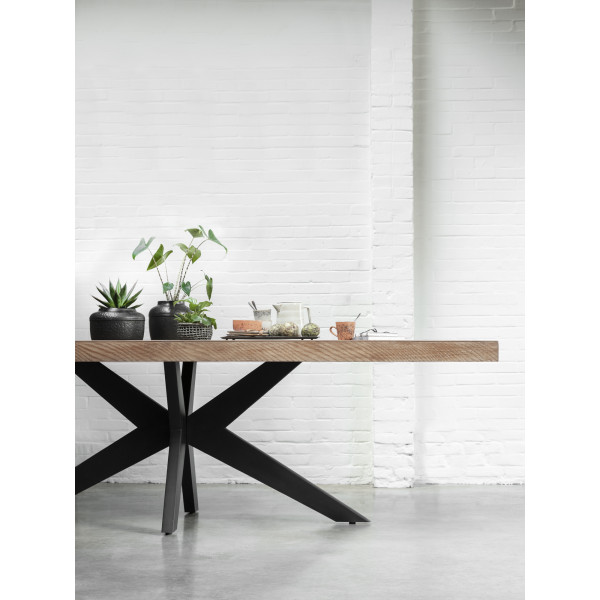Масичката за кафе Lincoln е идеална за трапезарията благодарение на своя функционален и автентичен дизайн. Кафявият цвят на масивното тиково дърво на плота и черният цвят на структурата ѝ се сливат перфектно в декорацията, като придават индустриален акцент. Тази качествена мебел е с размери 260x100x77 см.