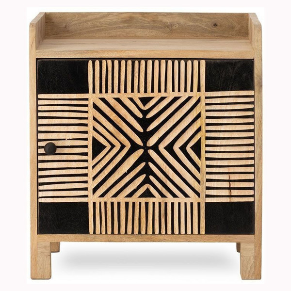 Това нощно шкафче Tonteg има практични размери 45х35х50 см, което го прави идеален избор за тесни пространства до леглото. Той има комбинация от естествени и черни цветове, осигуряващи контрастна и елегантна естетика. Нощното шкафче е изработено от дърво от манго, издръжлив и здрав материал, както и средни плоскости. Тази комбинация от материали осигурява на масата както топъл външен вид, така и структурна здравина. С функционалния си дизайн това нощно шкафче осигурява практично място за съхранение на книги, нощни лампи и други основни неща. Той добавя нотка на естествен и съвременен стил към спалнята, като същевременно отговаря на нуждите от съхранение.
