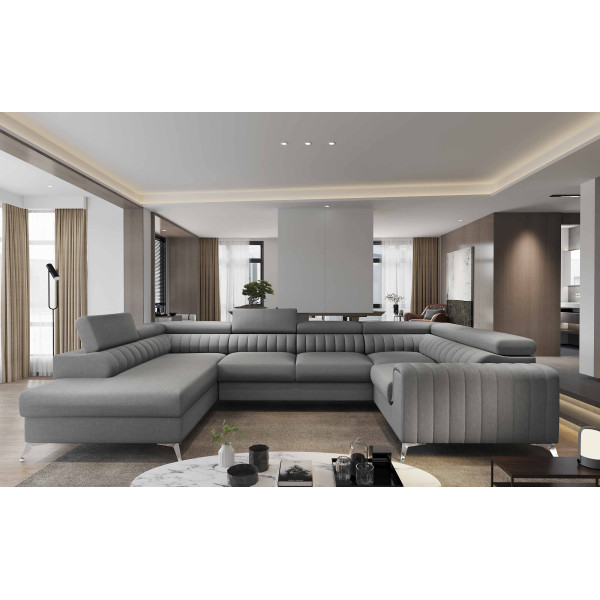 Този ъглов диван Louis от Eltap е мека и удобна мебел, проектирана в дух на релаксация. Тапицерията на тъканите, както и хромираните стоманени и пластмасови крака, използвани в дизайна на този диван, са много издръжливи, което позволява дългосрочна употреба. С размери 340х202х92 см, височина на седалката 45 см, той предлага достатъчно място за комфортен отдих за семейството. Тя може да бъде превърната в легло с площ за спане 210х125 см за нощта.