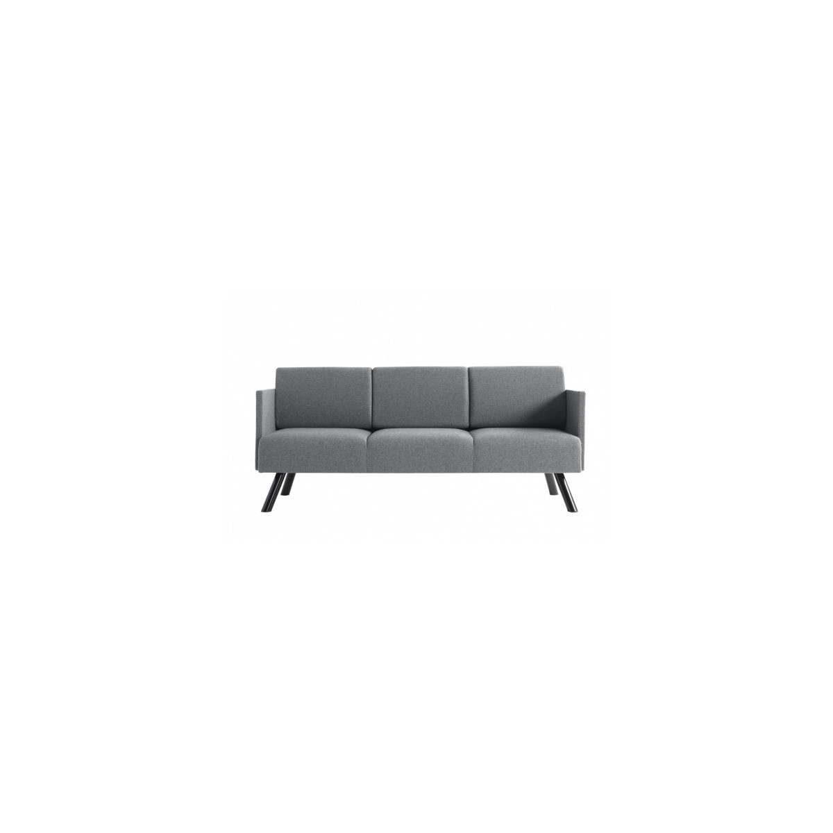 3-местен диван с тапицирана седалка и облегалка, тапицерия от плат, стоманени крака; версия с подлакътници.