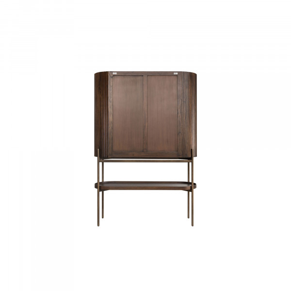 Зада създадете елегантно оформление, този шкаф Pogoro е перфектен. Този гардероб е изцяло изработен от минди дърво и стоманена рамка. Цветът му в печено кафе и тъмен месингов метал е хубава конфигурация вътре. Това устройство за съхранение е с размери 45x125x180 см.