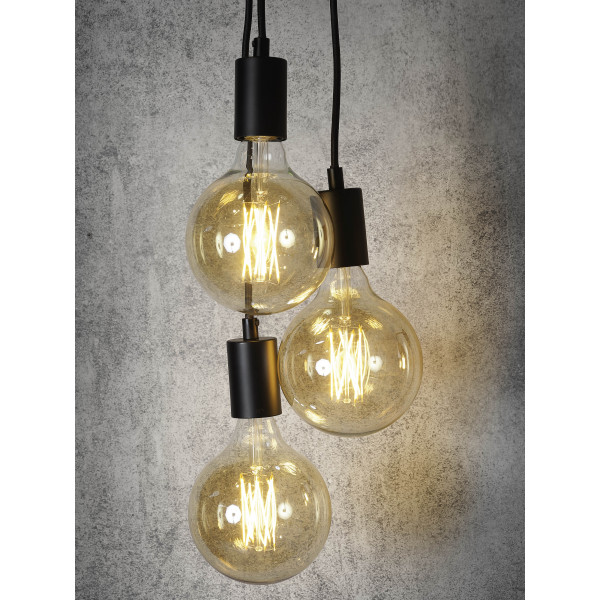 Като комбинирате висящата лампа Oslo с 3 крушки с декоративни крушки (E27 не са включени), атмосферата в стаята придобива ново измерение. Височината може да се регулира от 10 до 150 см, което позволява персонализиране на декорацията. Ширината й е 20 см, а основата е с размери 15x15x3 см.