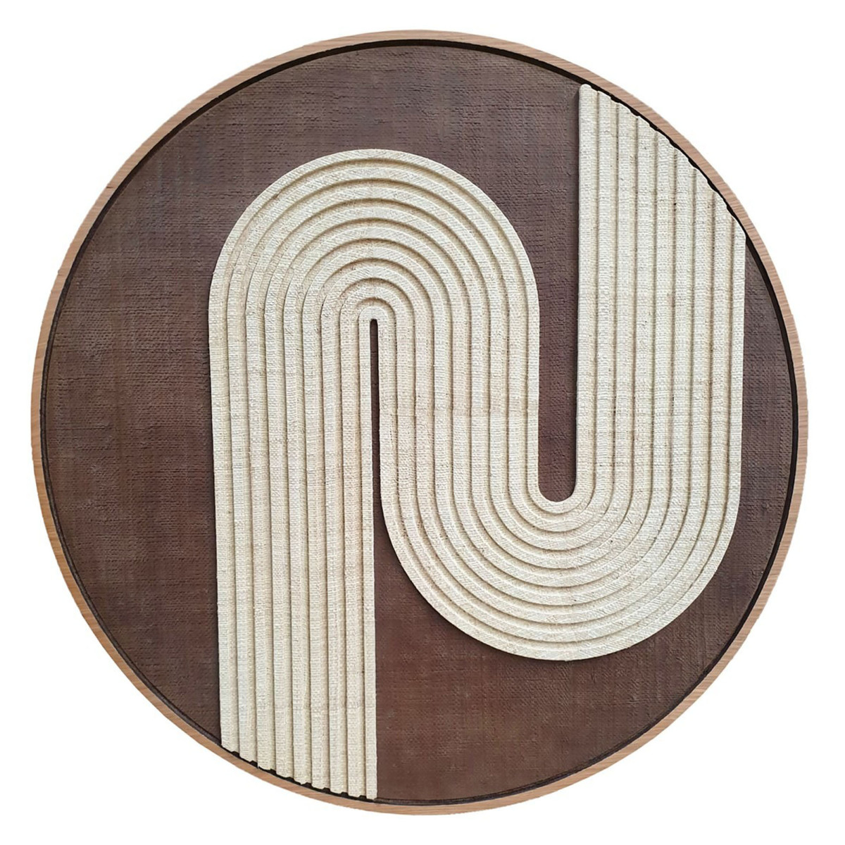 Reliéf stěny Julie je dekorativní předmět ve tvaru kruhu o rozměrech ø100x4 cm. S tkanou palmovou dýhou a dubovým rámem je tento reliéf stěny elegantním doplňkem, který dodává každé místnosti přirozený a autentický nádech. Přírodní a tmavě hnědé barvy reliéfu stěny dokonale ladí s různými barvami stěn a dekorací. Je to perfektní dekorativní doplněk, který dodává interiéru texturu a styl.