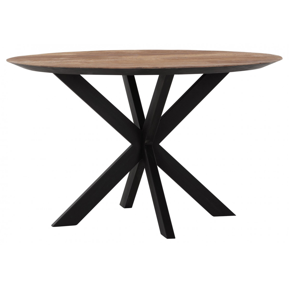 Jídelní stůl Shape kulatý z kolekce Timesless má desku z recyklovaného teakového dřeva. Ta se směrem k okraji zužuje a má černé okraje. 4 černé železné nohy se kříží, což dodává stolu elegantní vzhled. Jídelní stůl je k dispozici ve dvou průměrech a dvou barvách.