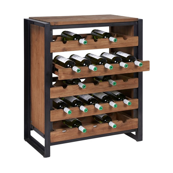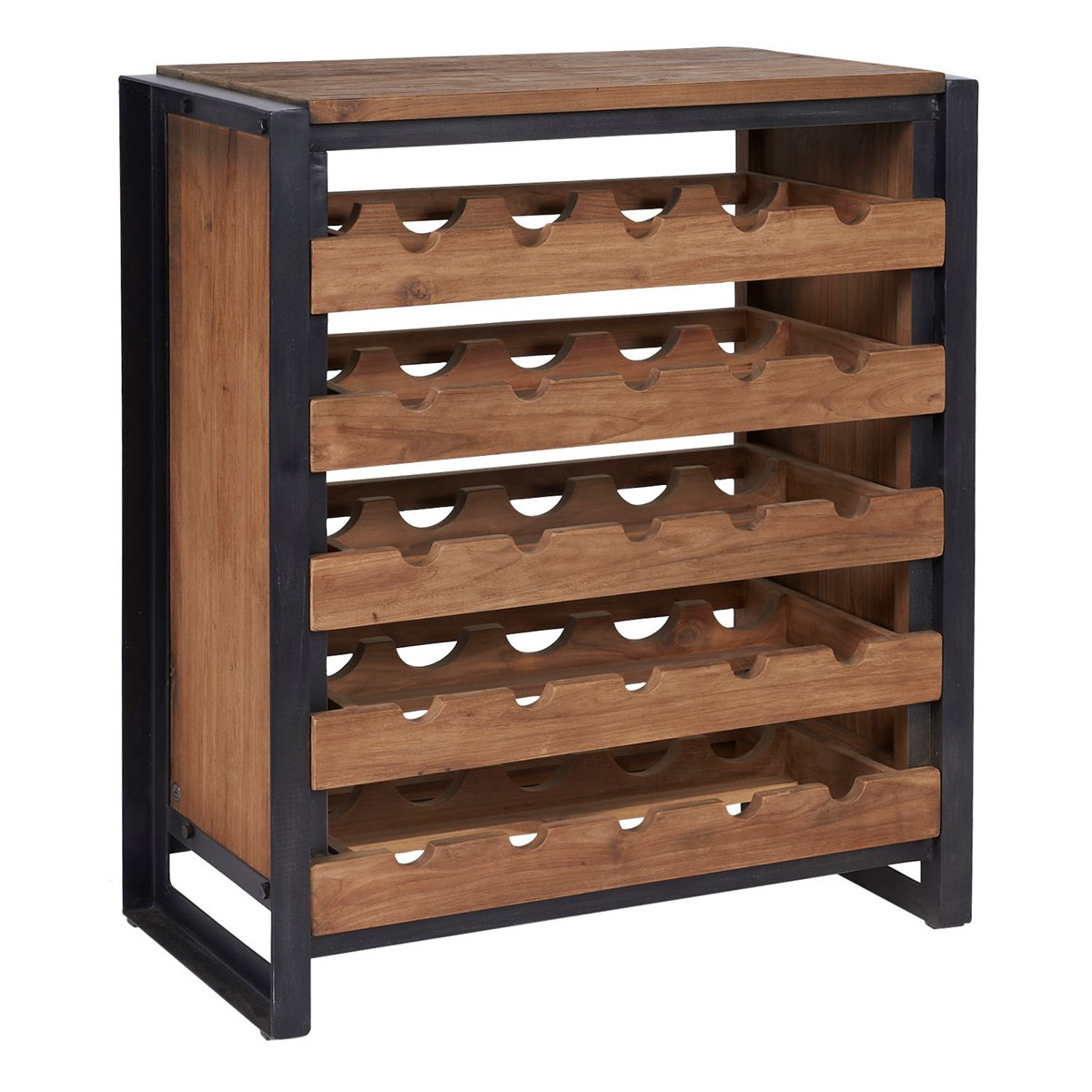 Stojan na láhve z recyklovaného teaku s černým kovovým rámem
