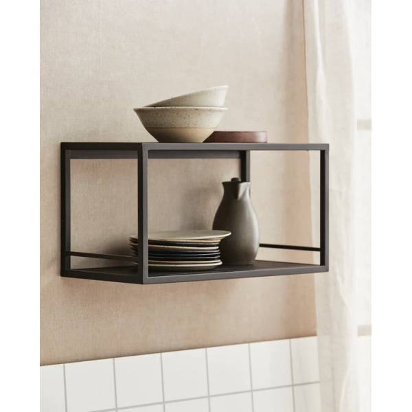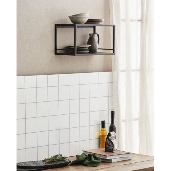 Tato nástěnná police transformuje prázdné stěny na skvělé místo pro zobrazení nejkrásnějších doplňků v kuchyni. Skládá se ze dvou polic z borovicového dřeva s robustním černým železným povrchem pro průmyslový vzhled. Tento model měří 40 x 20 x 21 cm.
