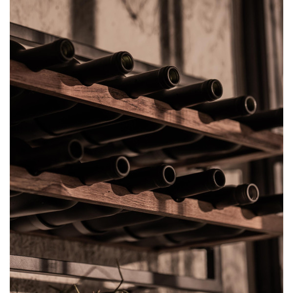 Tento stojan na víno typu A s 12 lahvemi je stojan na víno navržený tak, aby dokonale harmonizoval s našimi policemi. Praktické a elegantní, umožňuje vám zvýraznit vaše oblíbené lahve vína zábavným způsobem. Tento nástěnný stojan na víno je ručně vyroben z regenerovaného teaku a ručně pájeného železa. Můžete jej zavěsit samostatně nebo kombinovat s jinými držáky lahví nebo policemi Shelfmates. Typ A pojme až 12 lahví vína. Jeho rozměry jsou 65x25,5x35 cm.