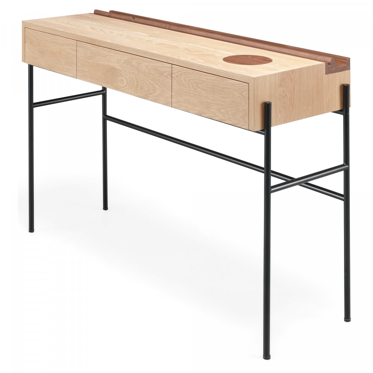 Minimalistická konzole Concierge je vyrobena z masivního dubu s některými prvky z ořechu. Je to dokonalé spojení dřeva a
