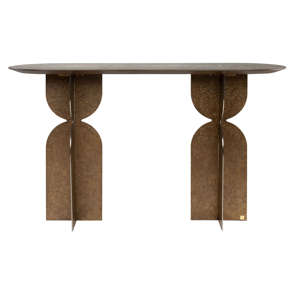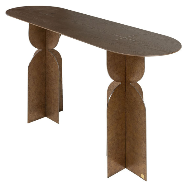 Konzolový stůl Raya měří 46x140x80 cm a je vyroben z kombinace vysoce kvalitních materiálů včetně oceli, dubu a MDF. Tento konzolový stůl má kávu a bronzovou barvu, což mu dává elegantní a sofistikovaný vzhled. Díky své kompaktní velikosti a elegantnímu designu lze konzolový stůl Raya použít také ve vchodu nebo na chodbě, aby dodal domácímu dekoru nádech sofistikovanosti. Deska stolu je chráněna proti skvrnám dvoukomponentním PU vrchním nátěrem.