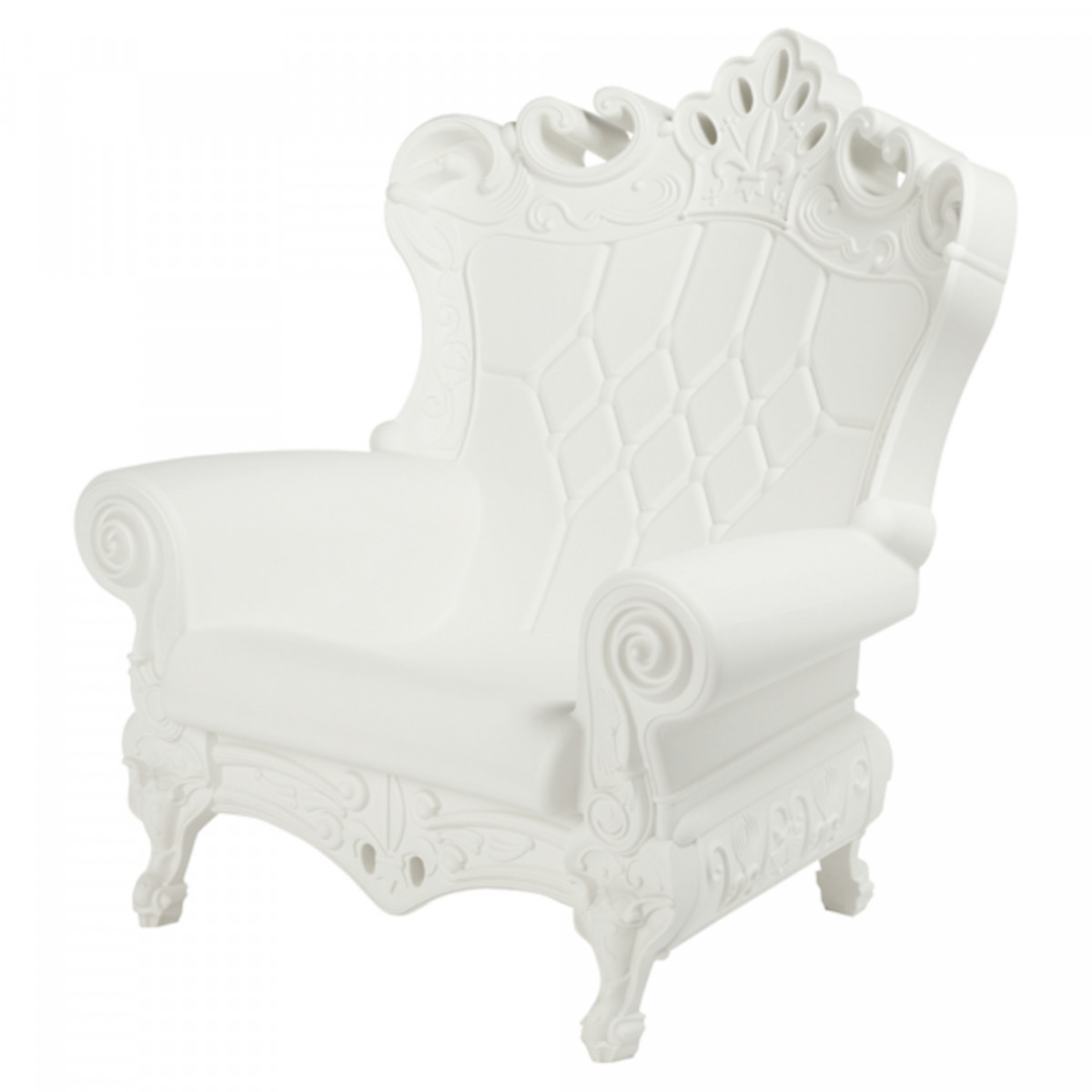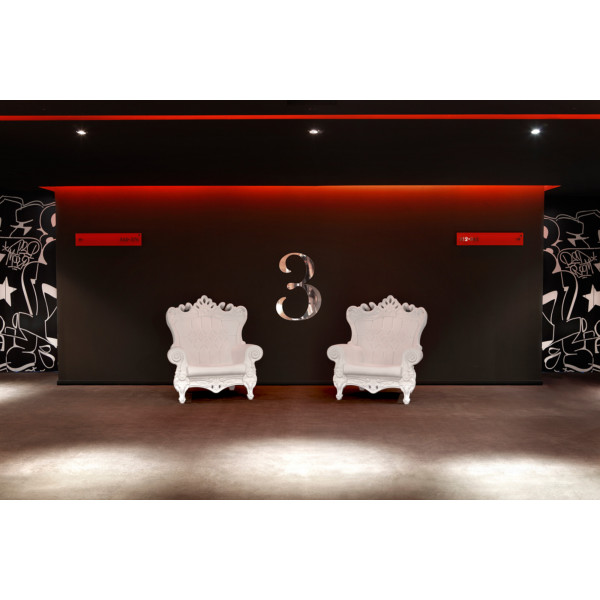 Elegantní a rafinované, křeslo Queen of Love není jen luxusní sedadlo. Je to neodolatelný designový nábytek. Sedadlo se přizpůsobí jakémukoli typu prostoru, vnitřnímu i venkovnímu, jako jsou obývací pokoje, obchody a restaurace, stejně jako pro smluvní účely. Navrženo designéry Graziano Moro a Renato Pigatti, je vyrobeno z jednoho kusu polyethylenu a měří 103,5x98x112,5 cm a váží 20 kg.