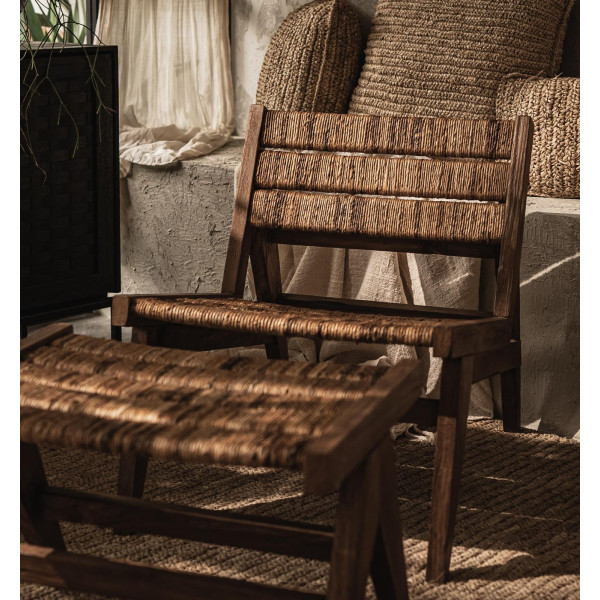 Křeslo Caterpillar Brawny je rustikální i moderní, s ikonickým vzhledem. Ručně vyráběné místními řemeslníky z kombinace ručně tkané abaky a regenerovaného teakového dřeva, toto vysoce kvalitní křeslo krásně spojuje tradiční materiály s moderními tvary. S velikostí 56x78x64,5 cm je ideální pro relaxaci a relaxaci.