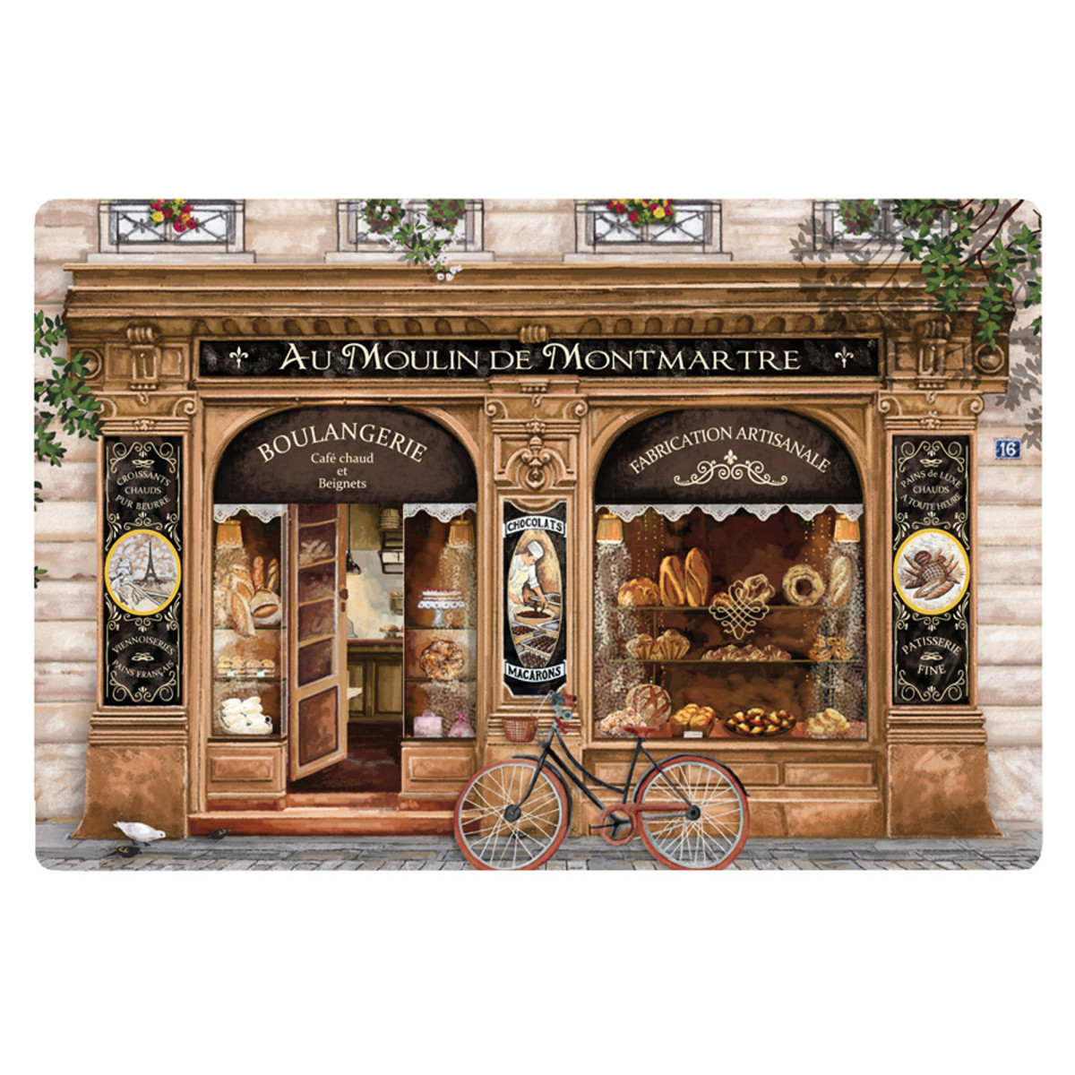 Prostírání "Tradiční pekárna" od značky Ça et Là, vyrobené ze 100% polypropylenu, je velmi snadné na údržbu. Ideální pro ochranu ubrusu nebo stolu před skvrnami, potěší milovníky tradiční kuchyně. Navíc přináší do kuchyně nádech vintage a vzdává hold kulinářským tradicím. Jeho rozměry jsou 30x45 cm. Prodává se v sadě po 6 kusech a nabízí různé barvy.