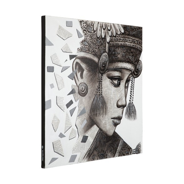 Tento balijský Ketut nástěnné umění od Must Living vyjadřuje autentický holandský životní styl. Toto plátno zobrazuje balijskou ženu s tradičními klenoty z ostrova Bali. Má velikost 100x100 cm a barvu v černé a bílé barvě. Tato malba plátna dodává do stěny v obývacím pokoji další výzdobu.