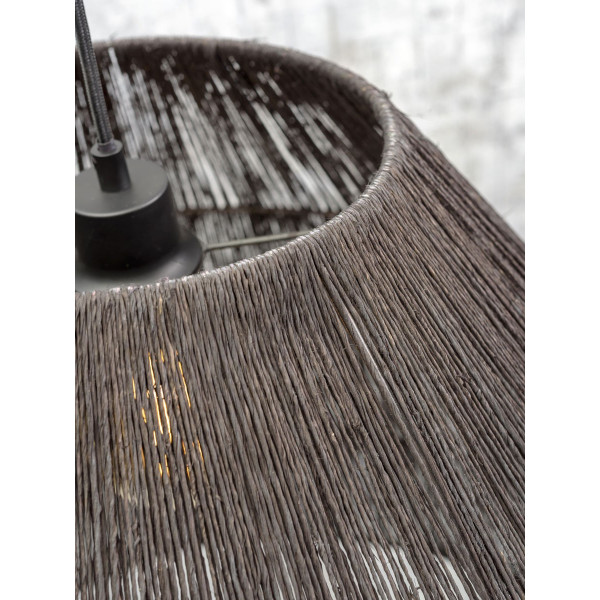 Kuželová závěsná lampa Iguazu, vyrobená z jutových vláken a železa, okamžitě svádí svým charakterem kombinujícím přirozenost a modernost. Přidává do místnosti dotek pohostinnosti. Toto svítidlo se vyznačuje délkou 60 cm, nastavitelnou výškou 50 až 200 cm a velikostí základny 11 cm v průměru x 4 cm tlusté. Tento model má stínidlo o průměru 60 cm a jehož výška je 25 cm. Tato závěsná lampa má základnu E27 (žárovka není součástí dodávky).