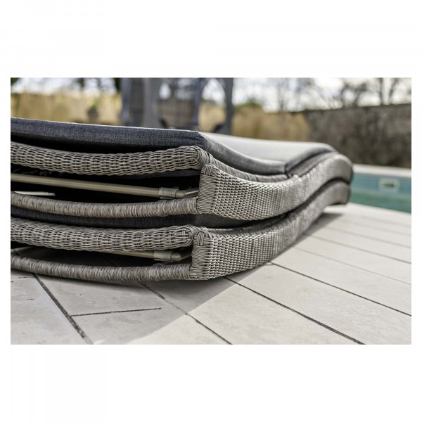 Tato lehátka Monte Carlo vám umožní vychutnat si okamžik relaxace a zdokonalit opálení v naprostém pohodlí. Vybaven polštářem, harmonizuje s tvarem zad a zajišťuje tak optimální komfort. Toto solárium 220x72x43/100 cm je vyrobeno z hliníku a ručně vyráběné opletení ze syntetických vláken. Kvalita materiálů zajistí kvalitní a jedinečný produkt.