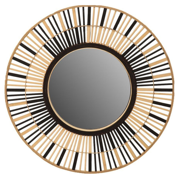 Zrcadlo Soullans Rayé má výjimečný design, který kombinuje formu a funkčnost. Jeho stříbrný, černý a přírodní bambusový rám je navržen ve vzoru mini palet, které obklopují elegantní starožitný litinový prsten. Zkosené sklo dodává sadě další nádech elegance. Toto zrcadlo má kulatou velikost ø81 cm, což z něj činí impozantní a estetický dekorativní prvek pro vnitřní prostor.