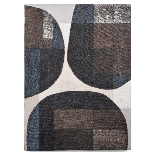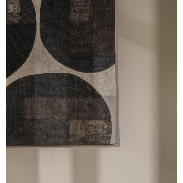 Das Produkt Chava - Rhythm ist ein von der Natur inspiriertes Kunstwerk. Diese Komposition besteht aus einzelnen Stücken alter Reissäcke, die mit wiederverwendetem Leinenstoff zusammengebunden sind. Es erstreckt sich über einen lackierten schwarzen Hartholzrahmen, der mit Farbe auf Wasserbasis beschichtet ist. Mit seinen Abmessungen von 52x5x72 cm verleiht dieses Unikat Ihrem Zuhause einen Hauch von Originalität und Authentizität.