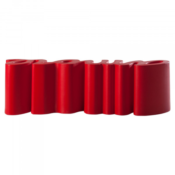 Die kalligrafische Bank Amore gehört zu einer ungewöhnlichen Lettering-Philosophie, die von Giò Colonna Romano entworfen wurde. Ein Wort wird zu einem Designelement und materialisiert sich, indem es sich in ein Produkt verwandelt, das in der Lage ist, eine Botschaft zu vermitteln. Die Bank kann jedem Vertragstyp, wie Restaurants, Hotels und Clubs, einen starken visuellen Eindruck verleihen und ist gleichzeitig für den häuslichen Bereich geeignet, um einem Raum Farbe zu verleihen und ihn spielerisch zu gestalten, typisch für die Slide-Kollektion. Sie kann sowohl drinnen als auch draußen verwendet werden. Sie misst 145x38x45 cm und wiegt 18 kg. Sie wird durch Thermoformen in einem Block aus Polyethylen hergestellt.