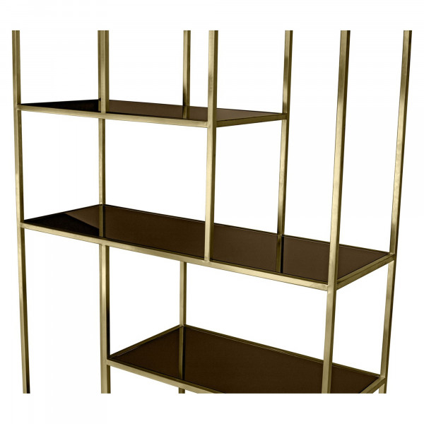 Das hohe Regal Lloyd ist ein wesentliches Element zur Organisation des Raums. Es besticht durch sein elegantes Erscheinungsbild dank seines Materials aus Edelstahl und Glas. Dieses Aufbewahrungsmöbel misst 98x35x210 cm und wiegt 47 kg.