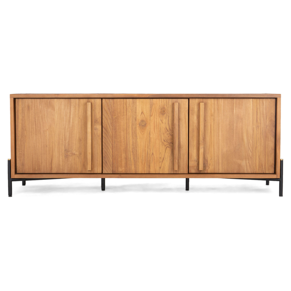 Das 3-türige Sideboard Outline ist ein hochwertiges Möbelstück mit klaren Linien und beeindruckender Zimmerei. Es lässt sich leicht an jeden Einrichtungsstil anpassen. Dieses Möbelstück besteht aus wiederverwertetem Teakholz und wird durch Eisenbeine ergänzt. In den drei geräumigen Fächern befinden sich zwei herausnehmbare Regale, um all Ihren Aufbewahrungsbedürfnissen gerecht zu werden. Seine Abmessungen sind mit bestimmten Abmessungen erhältlich.