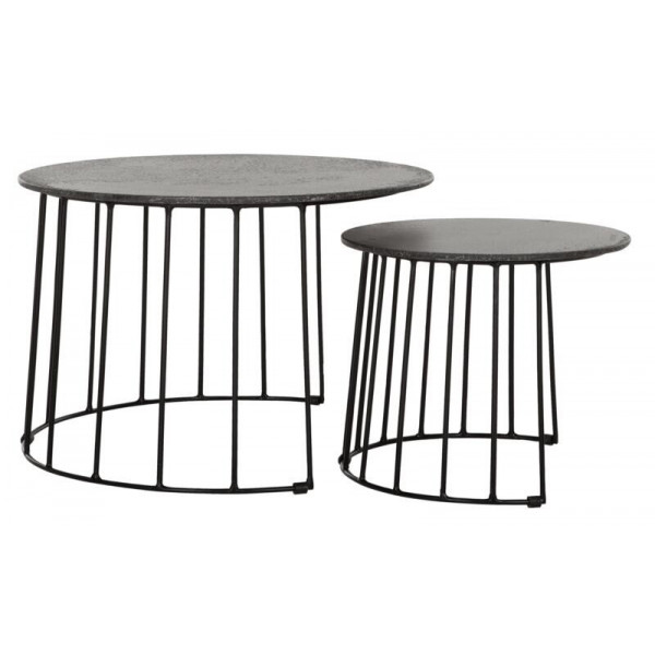 Der Couchtisch MUST Living Kilimandjaro ist im 2er-Set erhältlich. Sie haben eine Tischplatte aus schwarzem Basalt und ein Gestell aus Metall. Die Abmessungen der Tische sind Ø45x33 cm und Ø60x40 cm.