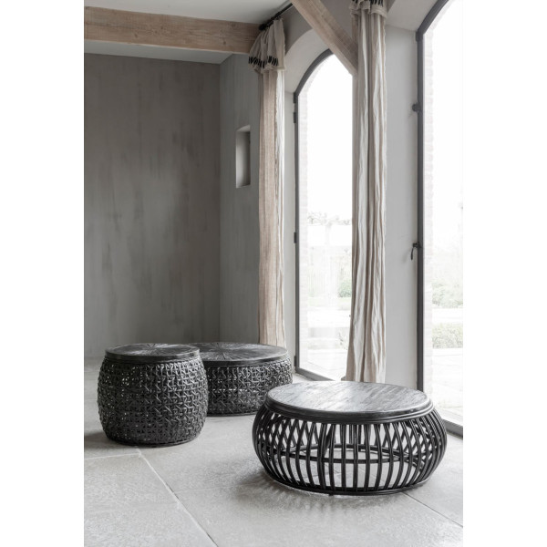 Der Couchtisch Rimini ist aus geflochtenem Rattan gefertigt. Er hat einen sowohl warmen als auch modernen Stil und ist in der Farbe Schwarz mit einem Durchmesser von 100 cm und einer Höhe von 35 cm erhältlich. Dieser zentrale Punkt des Wohnzimmers besticht durch seine authentische Seite und einen natürlichen und modernen Stil.