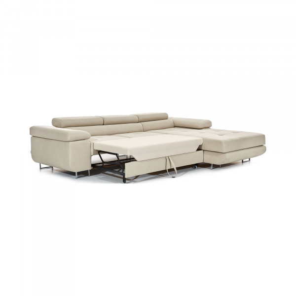 Dieses Armando-Ecksofa präsentiert einen modernen Look mit außergewöhnlicher Eleganz im Inneren. Das bei seiner Herstellung verwendete Stoffmaterial ist widerstandsfähig und langlebig. Dieses geräumige Ecksofa Armando von Eltap sorgt dank seiner breiten Armlehnen und Rückenlehnen, die gut auf der Rückseite sitzen, für einen angenehmeren Moment der Entspannung. Es hat eine Abmessung von 280x205x90 cm mit einer Sitzhöhe von 43 cm und ist in vielen Farben erhältlich. Darüber hinaus kann dieses Sofa bei Bedarf perfekt genutzt werden, da es in ein 125x198 cm großes Bett umgewandelt werden kann.