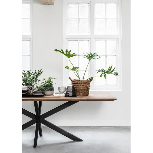 Der Esstisch Curves ist Teil der DTP Home Timeless Kollektion. Er ist aus recyceltem Teakholz gefertigt und in zwei Farben erhältlich: braun oder schwarz gefärbt, mit einem transparenten Lack überzogen. Zwei Größen sind ebenfalls verfügbar.