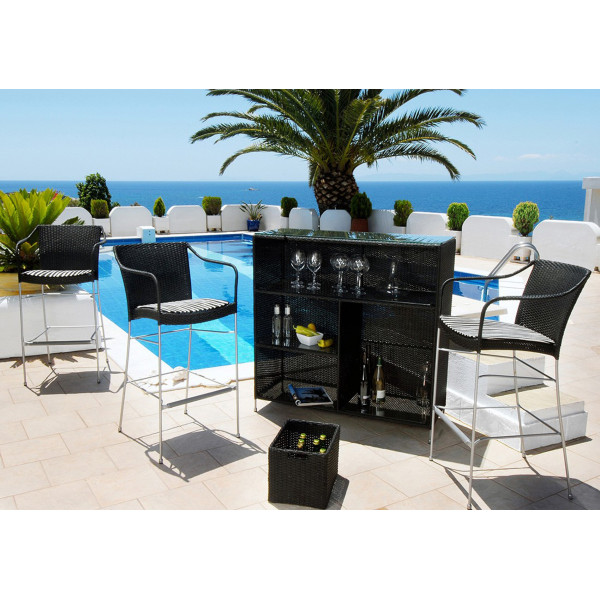 Der Pluto Bar Chair von Sika Design ist ein bequemer Stuhl an der Bar. Die ergonomische Form des Stuhls und seiner Armlehnen garantieren Momente puren Glücks. Die Beine dieses Stuhls sind mit einer Stange für Fußverlegung und Körperkomfort ausgestattet. Für einen bequemeren Sitz verfügt es über eine individuelle Polsterung. Die von Sika-Design entworfenen Kissen sind aus italienischem Stoff gefertigt und mit Teflon behandelt, um Wasser- und Fleckenresistenz zu gewährleisten. Die Struktur besteht aus feuerverzinktem Stahl, um die Qualität des Materials seiner Korrosionsbeständigkeit zu gewährleisten. Der Sitz und die Rückenlehne bestehen aus synthetischen Fasern. Dieser Stuhl misst 57x54x104 cm.