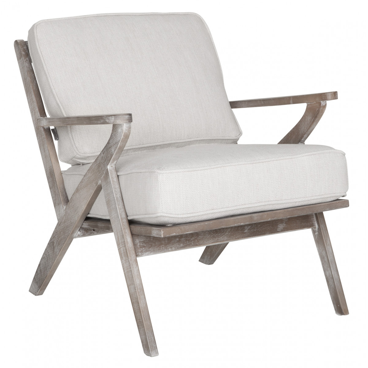 Der Liegestuhl Fletcher der Marke MUST Living misst 64x82x80 cm und hat eine Struktur aus Buchenholz und einen Sitz aus Baumwollstoff.