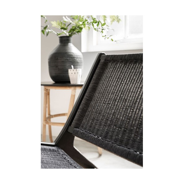 Der Lazy Loom Stuhl von Must Living ist ein Möbelstück mit einem originellen Design aus Teakholz und Webstuhlholz. Es ist mit Teakholz strukturiert, während die Rückenlehne und der Sitz in schwarzem und natürlichem Loom sind. Es misst 65x76x69 cm und bringt eine einfache Dekoration und ein modernes Aussehen in den Wohnraum.
