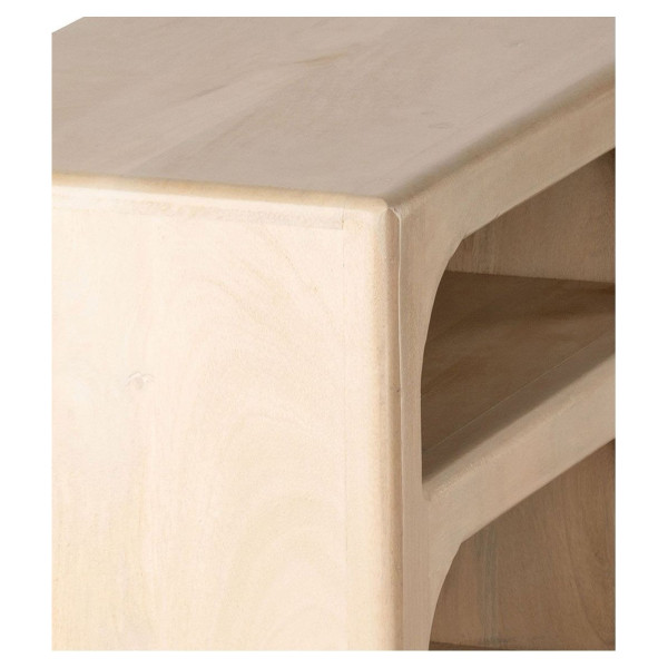 Dieser Uyuni Nachttisch aus Mangoholz misst 55x35x48 cm. Es hat eine beige Farbe, die ihm ein warmes und einladendes Aussehen verleiht. Mit seinen kompakten Abmessungen eignet es sich perfekt als praktische Ergänzung neben einem Bett und bietet Stauraum für Bücher, Nachttischlampen oder andere wichtige Dinge. Das Mangoholzmaterial verleiht ihm eine schöne Textur und eine erhöhte Haltbarkeit. Dieser beigefarbene Nachttisch ist sowohl funktional als auch ästhetisch und verleiht dem Schlafzimmer einen Hauch von natürlichem Stil.