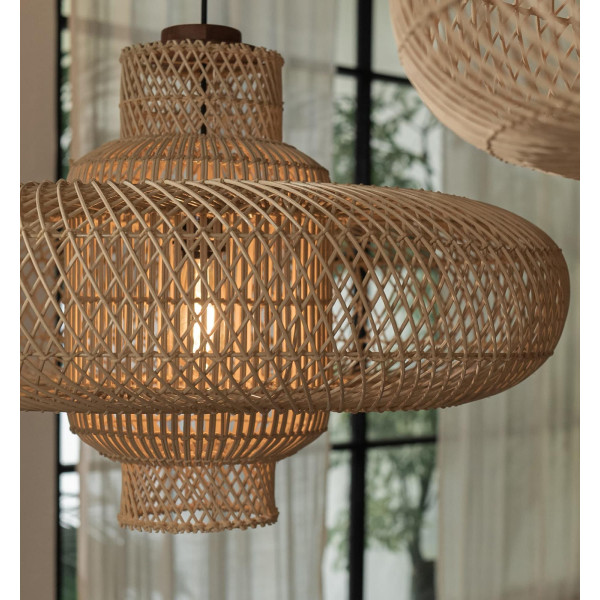 Dieser Organo-Anhänger ist in verschiedenen Größen und Ausführungen erhältlich. Diese spektakulären und eleganten Pendelleuchten basieren auf einer Komposition, die die traditionelle Fischfalle mit dem weichen Industriedesign kombiniert. Sie sind gekonnt von Hand aus Rattan auf einem Rahmen aus wiedergewonnenem Teakholz gewebt. Sie sind in einer „Natural“ -Version oder einer unglaublich schicken „Black“ -Version erhältlich und sorgen für einen zeitgemäßen Eindruck.