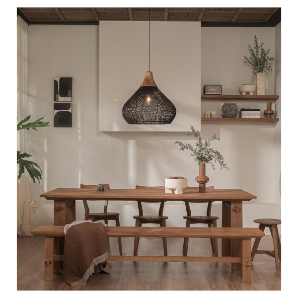 Diese Bell Pendelleuchte ist eine elegante Leuchte, die Licht auf traumhafte Weise bringt. Der Anhänger in Tropfenform ist an der gesamten Seite mit präzisen und organischen handgewebten Rattandetails versehen, die sorgfältig in traditioneller javanischer Technik gefertigt wurden. Erhältlich in verschiedenen Größen und in natürlicher oder anthrazitfarbener Ausführung. Wunderbar alleine oder zum Kombinieren mit verschiedenen Farben und Größen.