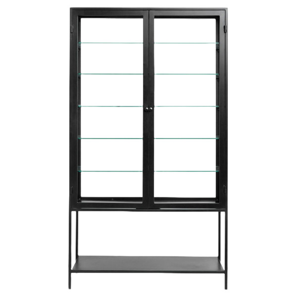 Dieser elegante schwarze Schrank Mondo verleiht einen modernen und leichten Stil, der perfekt mit der restlichen Dekoration harmoniert. Der Schrank besteht aus Eisen und verfügt über ein offenes Regal unten. Er ist mit sechs inneren Glasregalen und einer Frontöffnung ausgestattet, was einen offenen Look erzeugt. Dieses Möbelstück misst 112x41x198 cm.